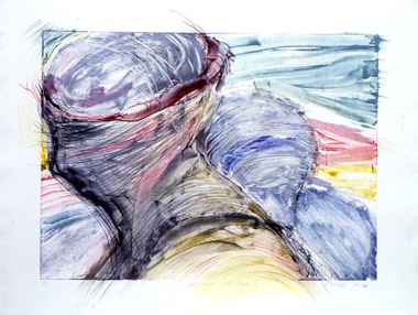 Recently I’ve been looking through a series of monotypes that I haven’t visited in a long time. I did quite a few of these in the early part of 1989, a kind of a mini-series within the very large Veils Suite series. I remember doing these very quickly, eager to bring these images forth in a way that was spontaneous and far less time consuming than etching. It’s an interesting experience for me to see these with fresh eyes now, and I thought it would be good to post them to my online portfolio over the next few weeks.