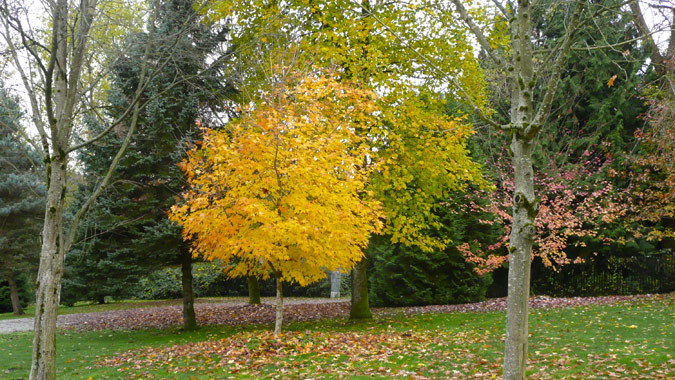 The brilliant coloured leaves are still clinging on the trees even as they carpet the ground below. That yellow is like sunshine on our cloudy day!